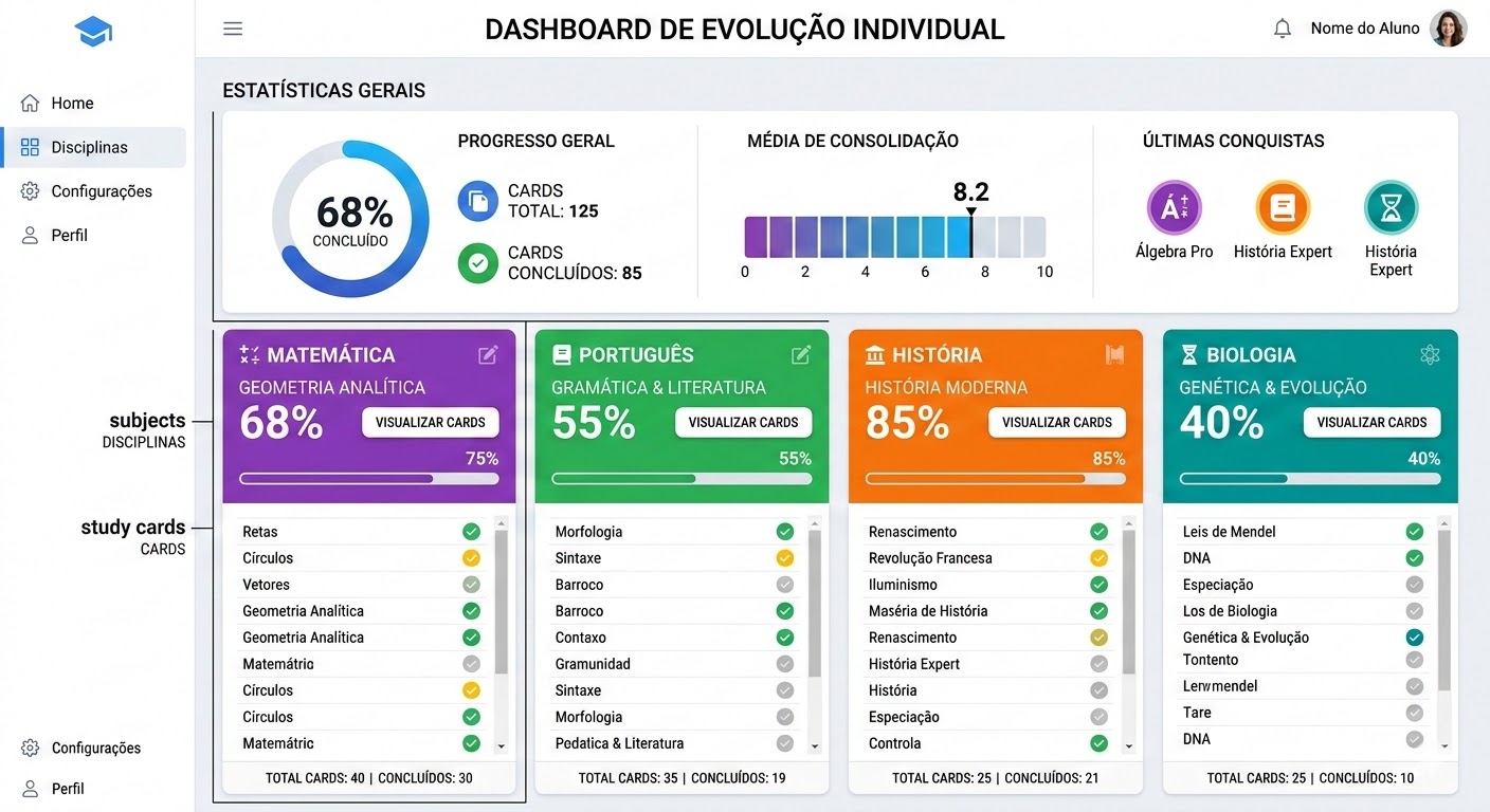 O MemoriCard foi desenvolvido pensando na sua jornada de aprendizado, oferecendo ferramentas intuitivas para otimizar seus estudos.