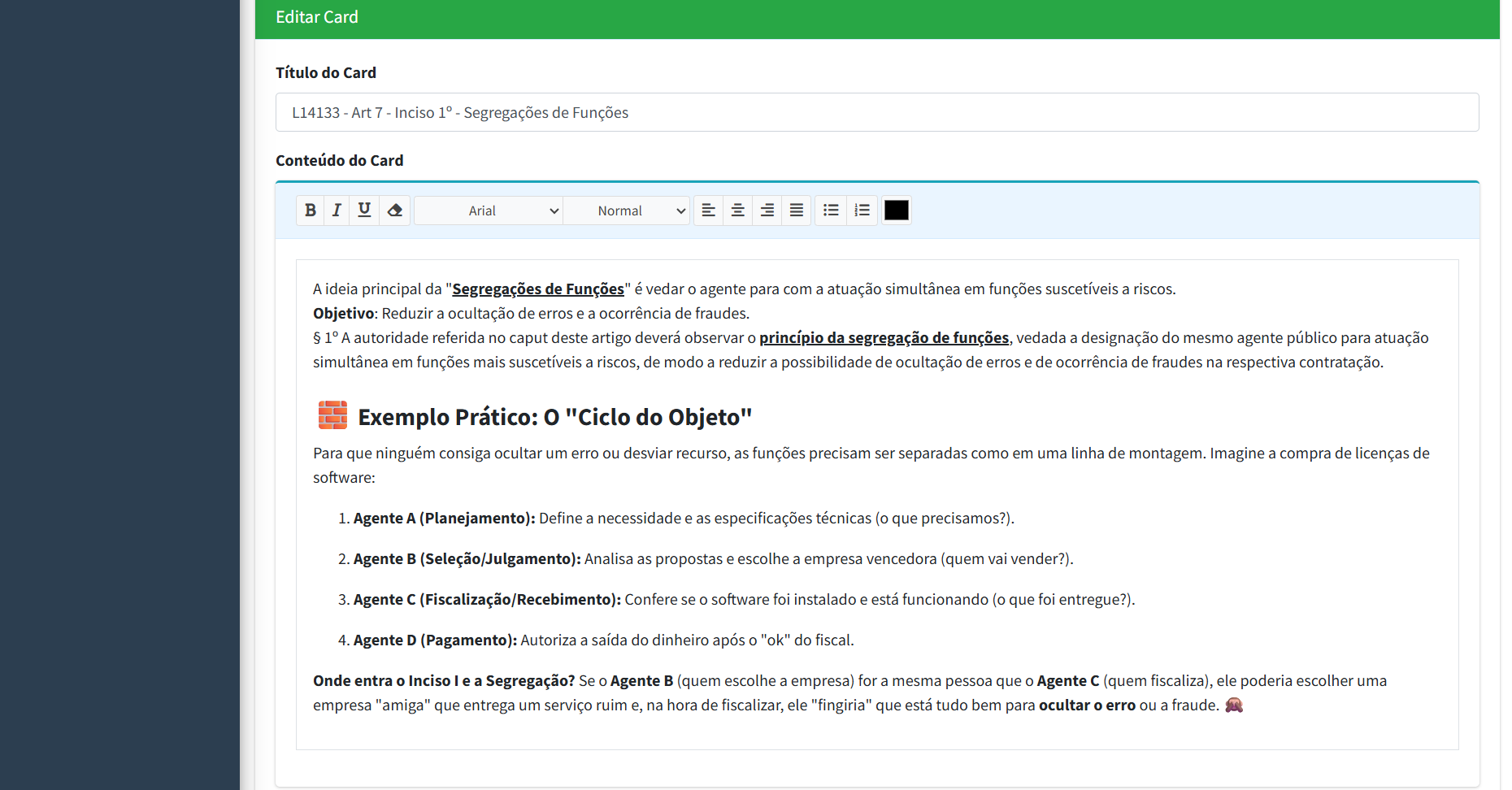 Nossa interface intuitiva permite que você adicione texto, imagens e formatação rica ao conteúdo dos seus cards, tornando o aprendizado mais dinâmico e visual.